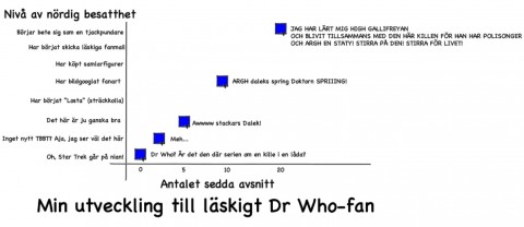 ![]() Imorgon ska jag p� Dr.Who-maskerad. Det tog knappt tv� m�nader innan jag gick fr�n en fullt fungerande gamer, fantasy och serien�rd till en helt onyanserat besatt Dr.Who-fanatiker.