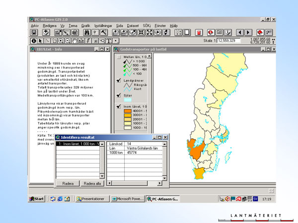 Koroplet-lagret visar mängden lastbilstransporterats gods inom resp. län. Västra Götaland har de högsta transporterna i landet.